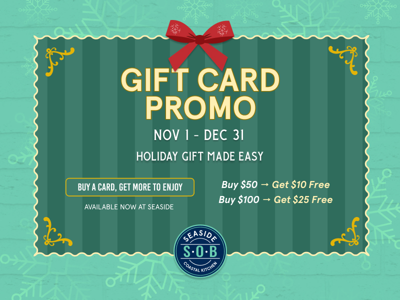 At Seaside, we believe great food should always surprise you. That’s why each day comes with its own twist. New specials, bold flavors, and dishes you won’t find anywhere else.