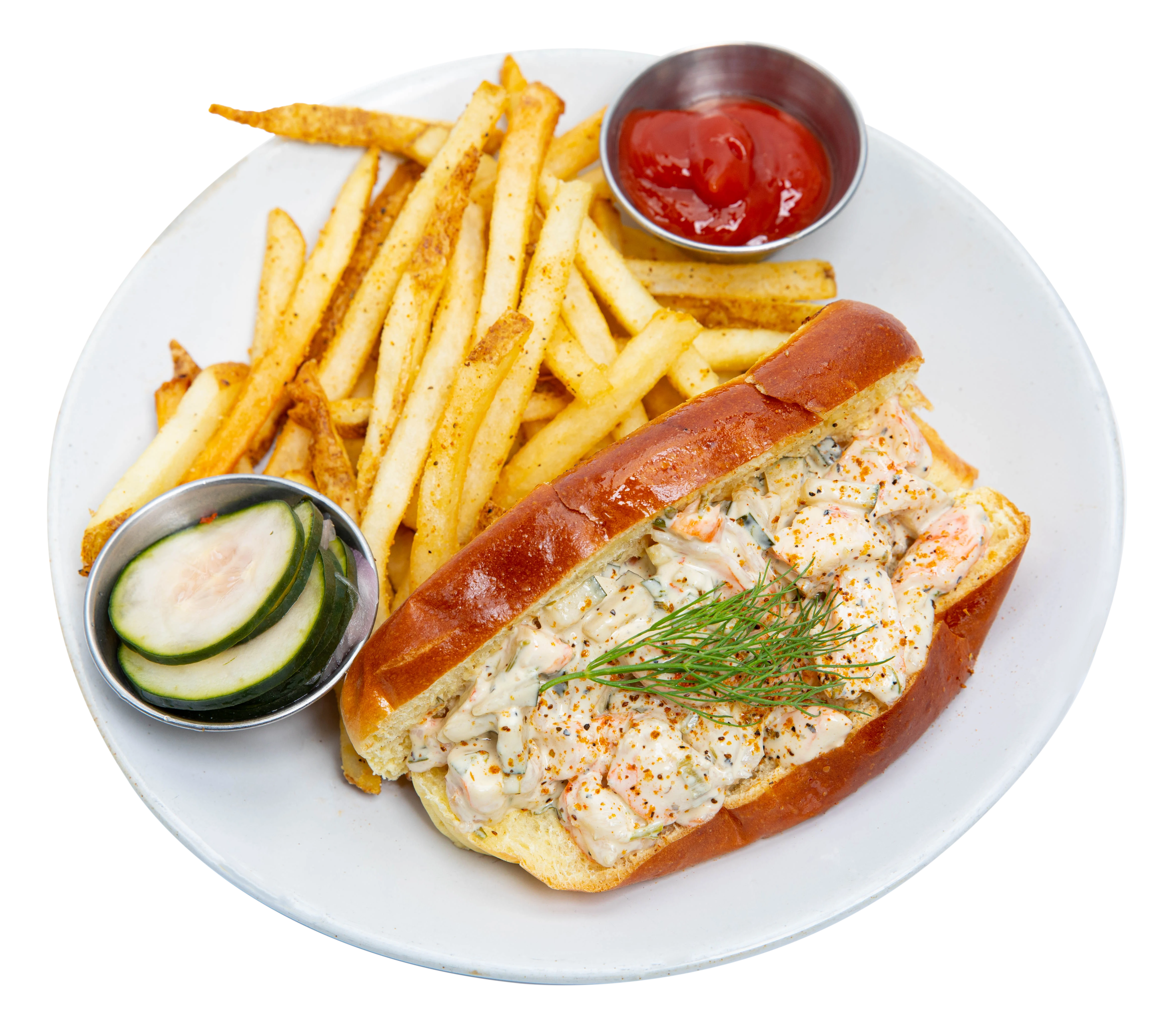 Chopped Shrimp, Tarragon-Cucumber Dressing, Butter Toasted Roll, SOB Seasoning, Dill