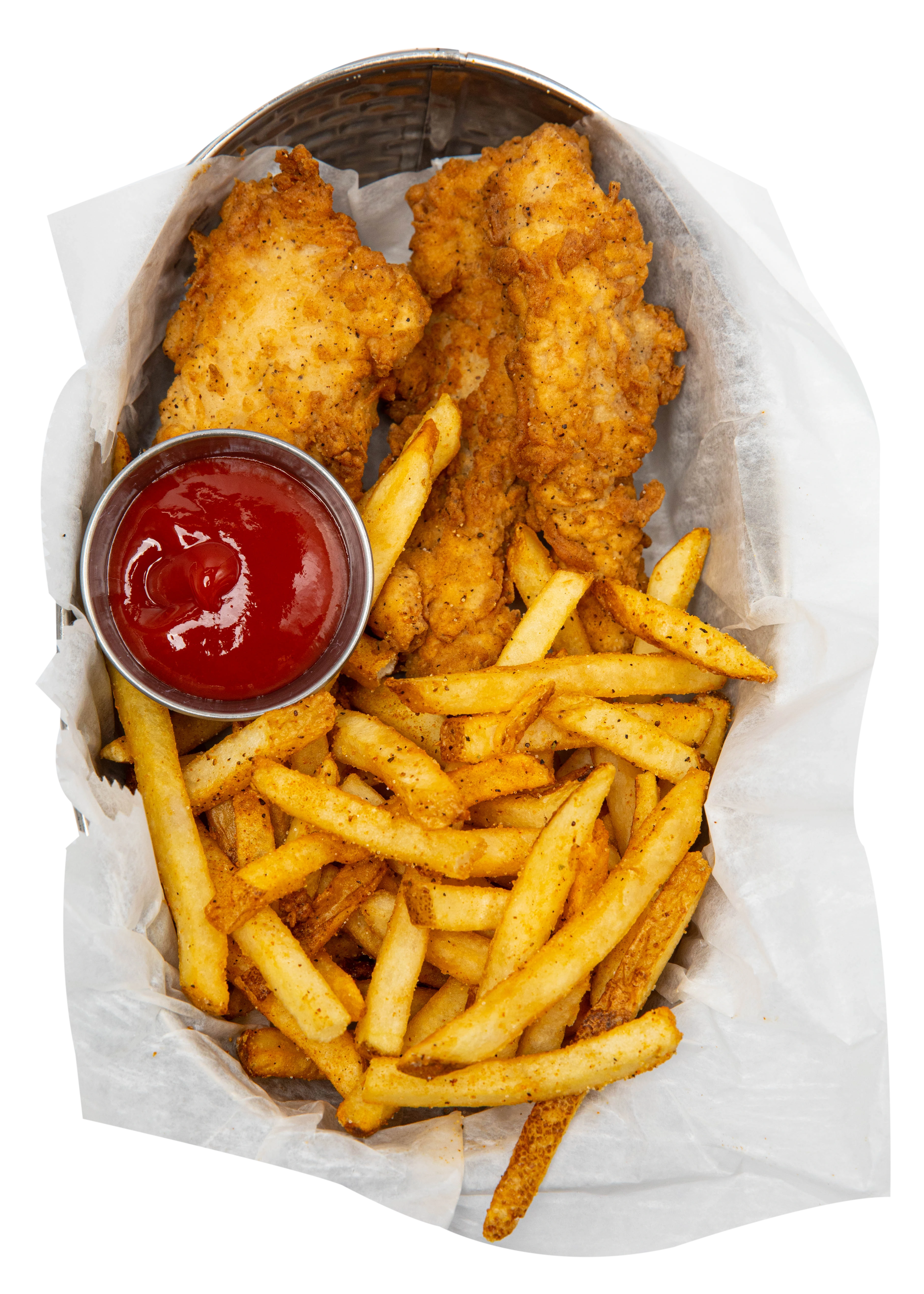 Hand-breaded, island style marinated chicken tenders. Served with honey mustard and fries